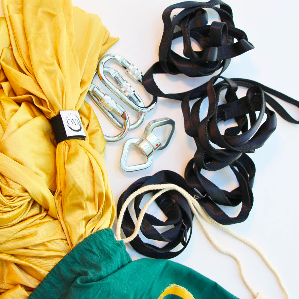 Les hamacs Oya Yoga sont la référence n°1 en France pour pratiquer le yoga aérien à la maison. Doux et très résistant, ils sont à la fois adaptés pour une pratique douce et dynamique. Kit adapté pour une installation chez vous facilement.