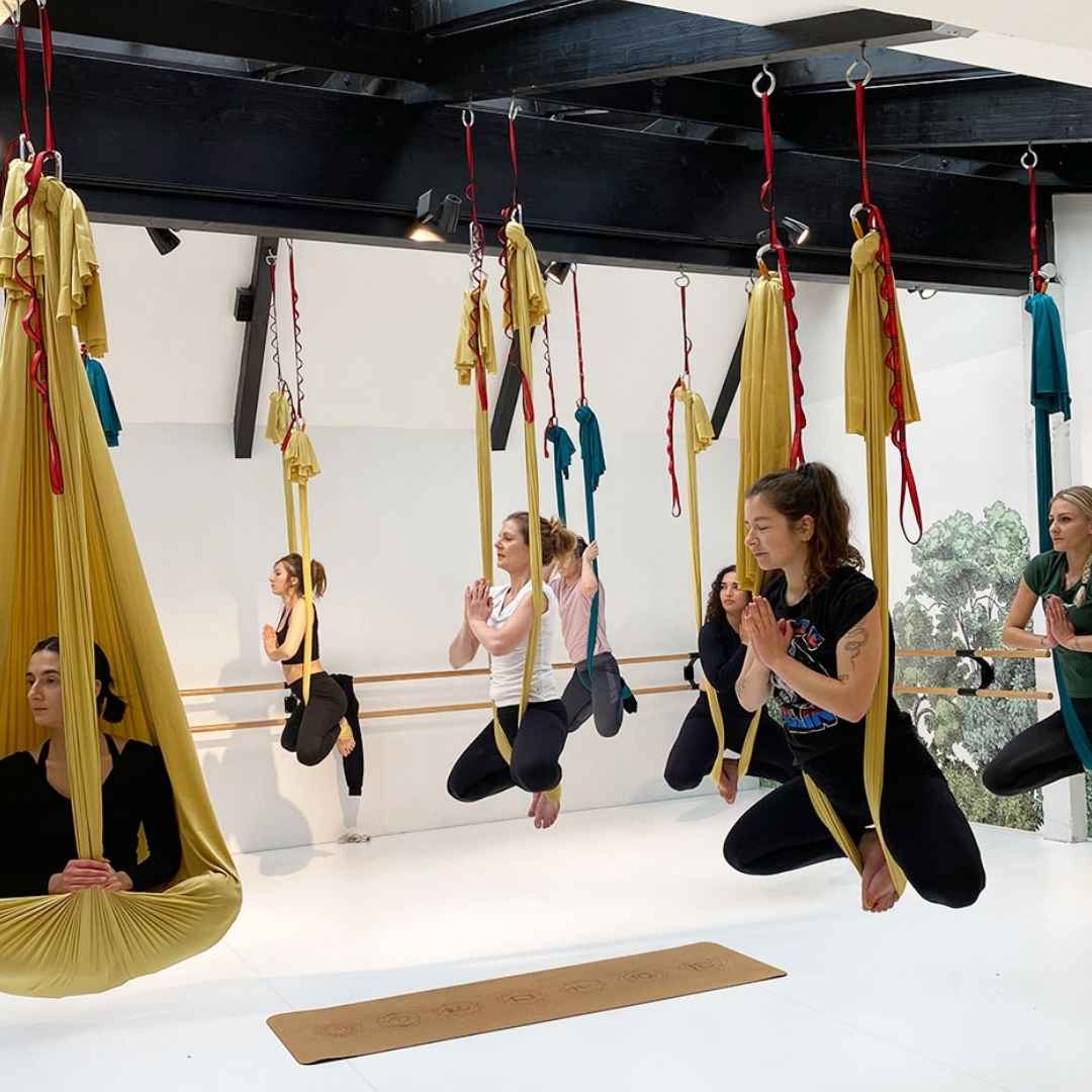 Nous vous fournissons du contenu et des formations pour vous former efficacement et rapidement à la pratique des cours de yoga aérien.